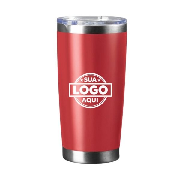 Descrição: Copo térmico em aço inox com pintura eletrostática e capacidade máxima de 520ml. Sua parede dupla, aliada à tampa plástica com vedação a vácuo e ao bocal com trava de segurança, assegura a conservação da temperatura das bebidas por muito mais tempo.