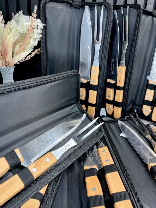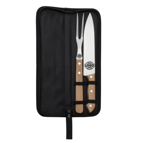 Produzidos em inox, o garfo e a faca garantem resistência à corrosão e ao desgaste, assegurando sua durabilidade mesmo após usos repetitivos. Além disso, o conjunto vem acompanhado de um estojo com zíper projetado para armazenar as peças com segurança e organização, facilitando o transporte para churrascos ao ar livre ou outras ocasiões especiais.