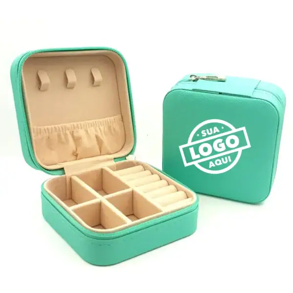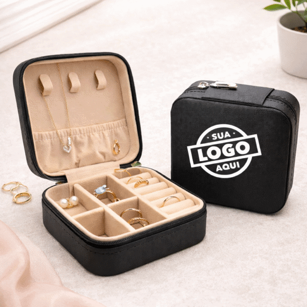 Descrição: Porta-joias de couro sintético com revestimento aveludado. Cada compartimento interno é pensado para guardar anéis, brincos, pulseiras e colares com elegância e organização.