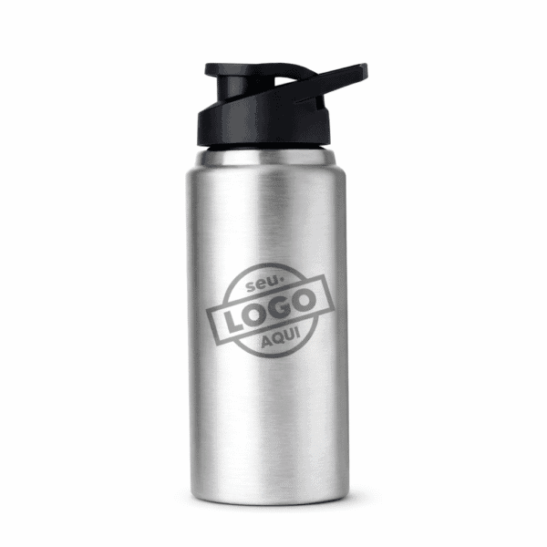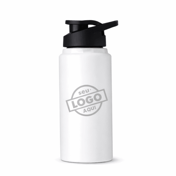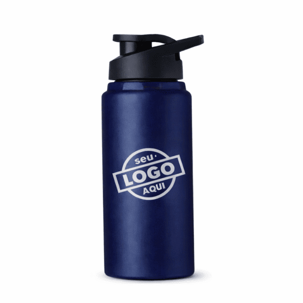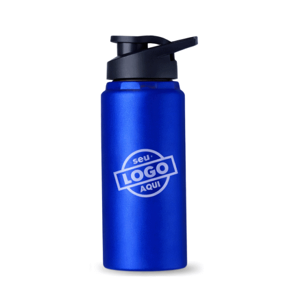 DESCRIÇÃO: Squeeze com tampa plástica rosqueável, alça e tampa protetora para o bocal.